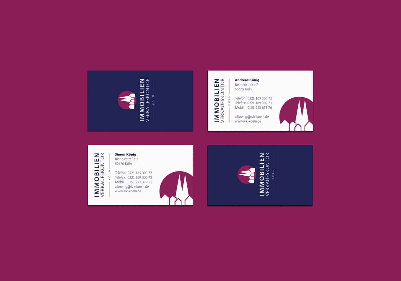 Mit dem neuen Corporate Design bekam auch die Geschäftsausstattung ein frisches Gesicht. Briefpapier, Visitenkarten und weitere Unterlagen sind nun einheitlich, kontrastreich und professionell gestaltet. So wird die Marke IVK Köln in jeder Kommunikation sichtbar – vom ersten Anschreiben bis zur Übergabe der Schlüssel.