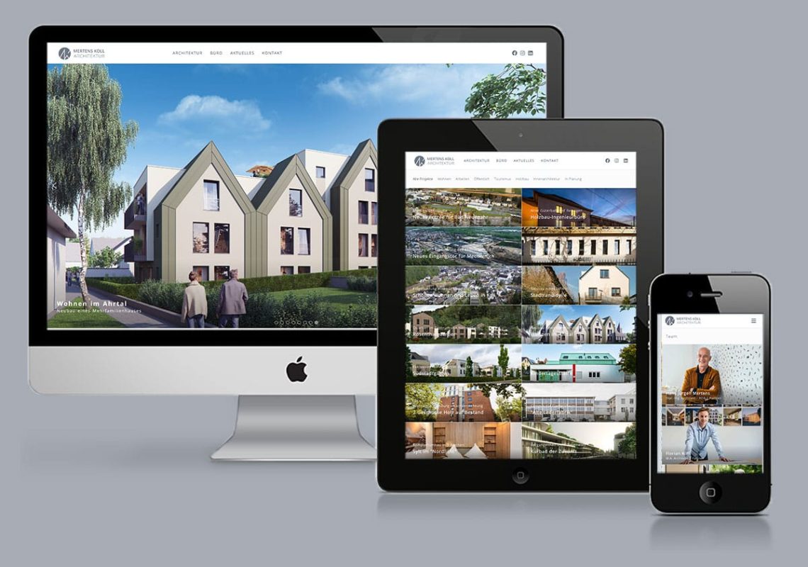 Das Ergebnis ist ein durchdachter Webauftritt, der die architektonische Handschrift von Mertens-Koll klar transportiert und die Expertise des Büros digital erlebbar macht.