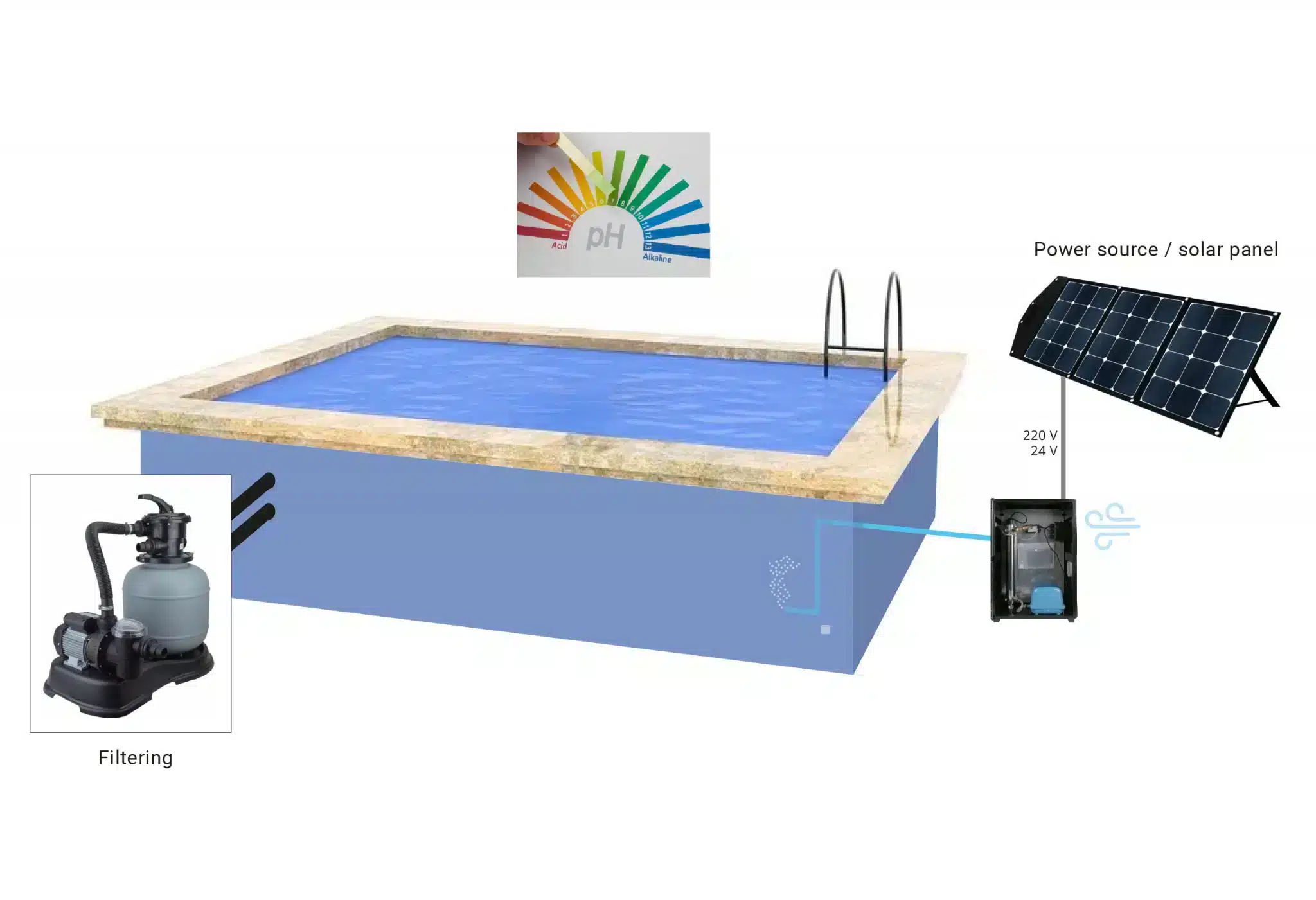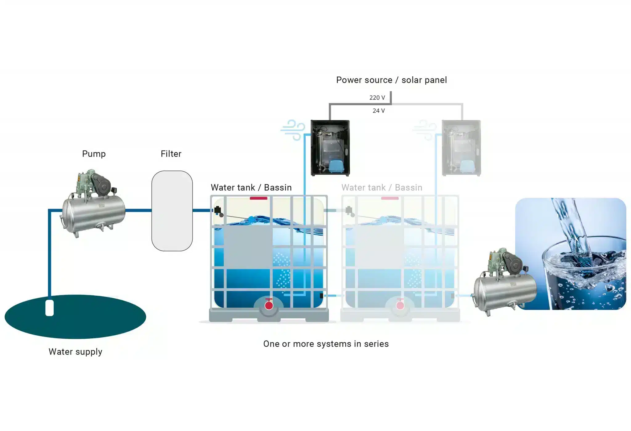 Ob bei der Trinkwassergewinnung, in Schwimmbädern oder bei Prozesswasser – die Grafiken zeigen, wie sich Nanonox nahtlos in bestehende Systeme integrieren lässt. Verständlich, klar und auf den Punkt.
